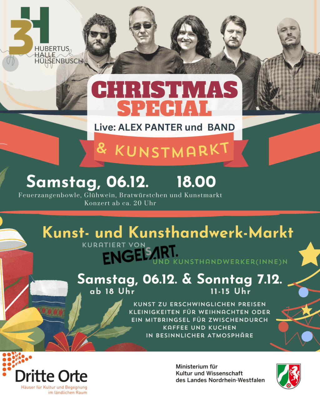 06. Dezember: So schön wie letztes Jahr…. Adventsfenster ab 18 Uhr, Kunst- und Kunsthandwerkermarkt ab 18 Uhr Konzert Alex Panter und Band ab 19 Uhr,